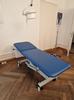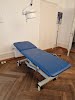 Sehr gut erhaltene Plinth Untersuchungsliege, elektrisch höhenverstellbar mit Fussschalter, Papierrollenhalter, Blau. 2-teilig, Rückenteil stufenlos verstellbar.